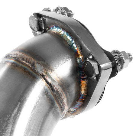 IE downpipes are manufactured with quality materials for lasting strength and performance. The T304L stainless steel investment cast body smoothly transitions exhaust flow from the Massive 6" CAT to the dual 2.5" mandrel Bent exhaust legs. All joints are hand TIG welded using precise fixtures and tooling for a seamless, leak-free fit.