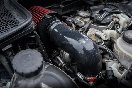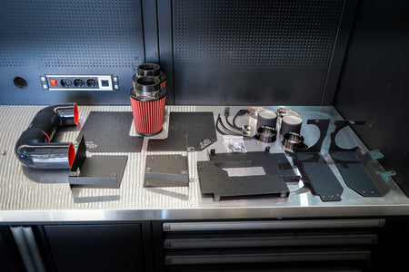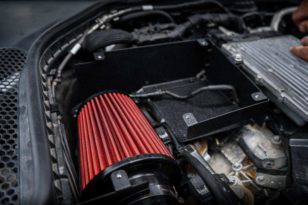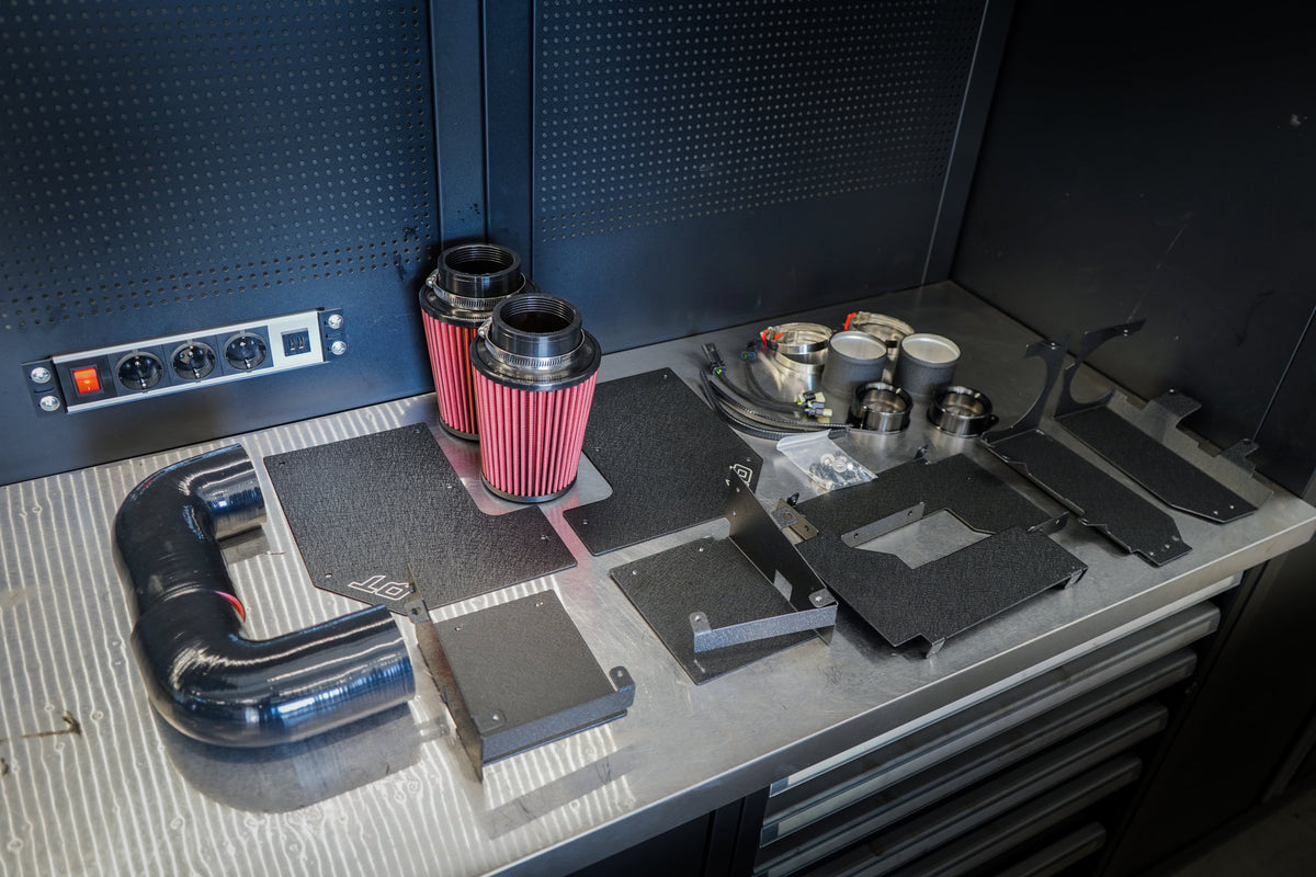 Maximum flow, better sound and a striking appearance – the new updated QT Intake Kit is designed specifically for Mercedes-Benz M276 V6 Biturbo engines. This fully compatible solution replaces the original cramped and soundproofed air intake system with a more efficient, flow-optimized design.