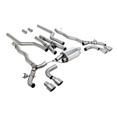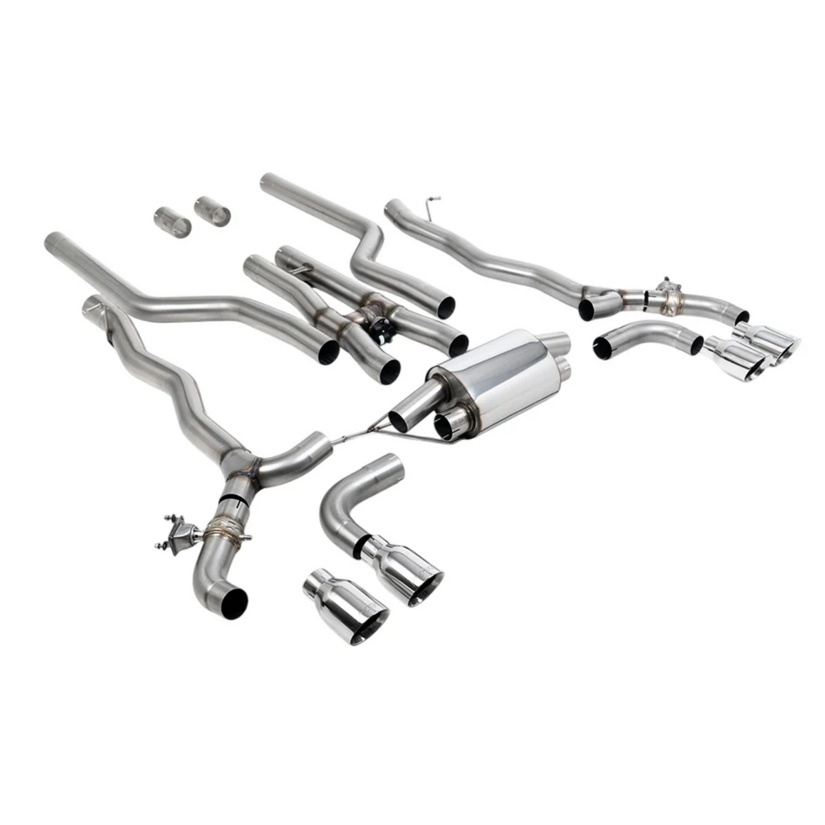 The Milltek Sport Cat Back exhaust system is designed for the BMW F90 M5 and M5 Competition models with the 4.4-liter twin turbo V8 (S63) and factory-fitted OPF/GPF particulate filter . The factory system effectively dampens sound and restricts flow, and the Milltek Cat Back solution is developed to unleash the character of the V8 engine in a controlled and high-quality way, while maintaining the car's premium driving comfort.