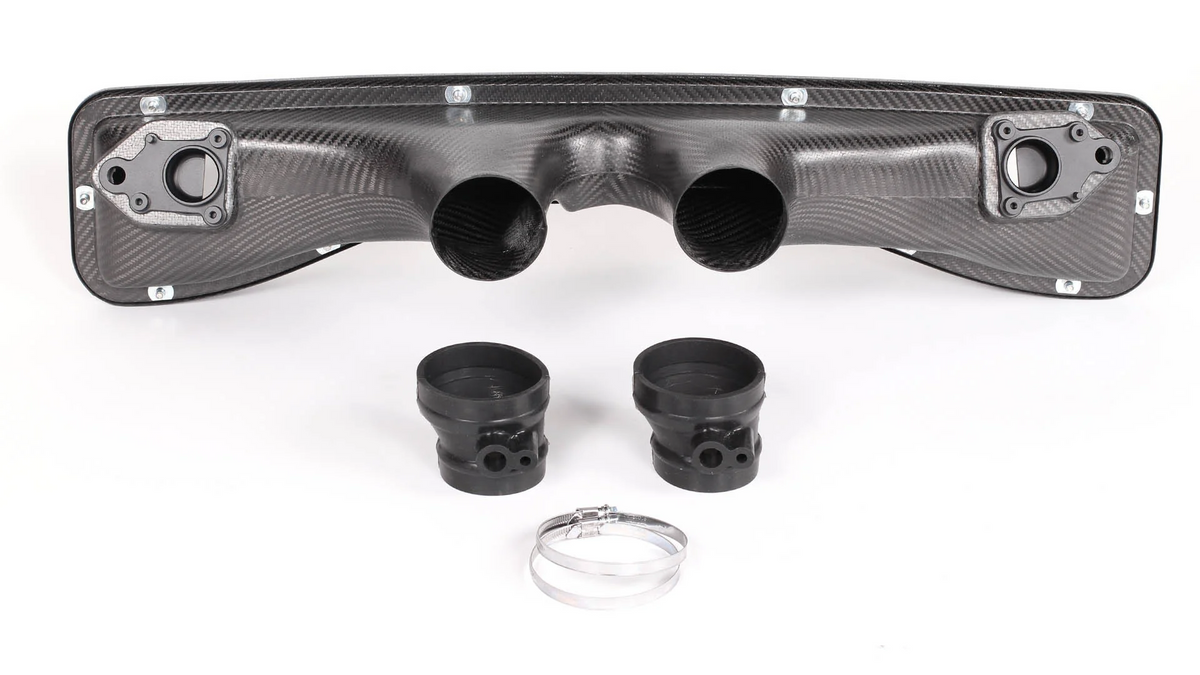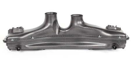 The M177.2 High Flow Carbon Airbox System utilizes a single panel filter that has a 90% larger surface area than the two stock filters. In testing, the very large panel style filter provides faster spool times and a more laminar air flow compared to a cone style filter. Not to mention, all electronics use OEM calibration strategies so you will not have any check engine lights when using this system.