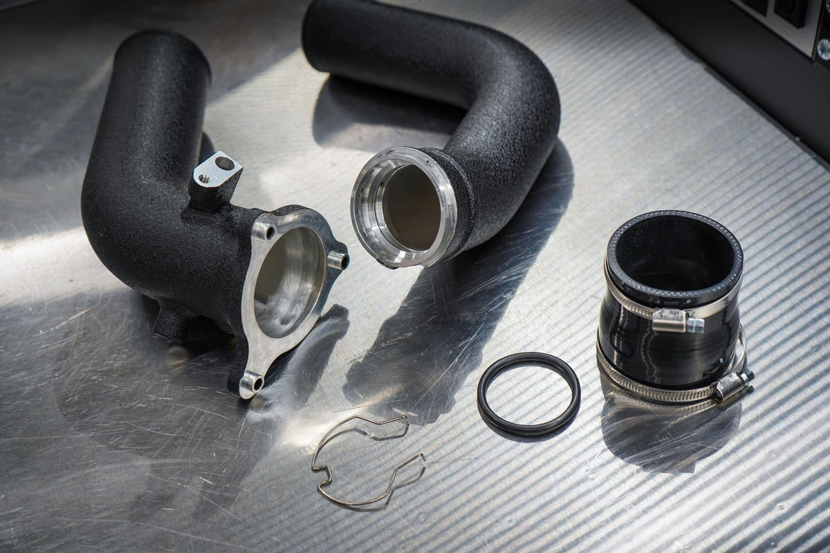 The factory plastic charge pipe sometimes doesn't last even in mildly tuned cars due to the brittle plastic. A must-have upgrade for tuned cars.