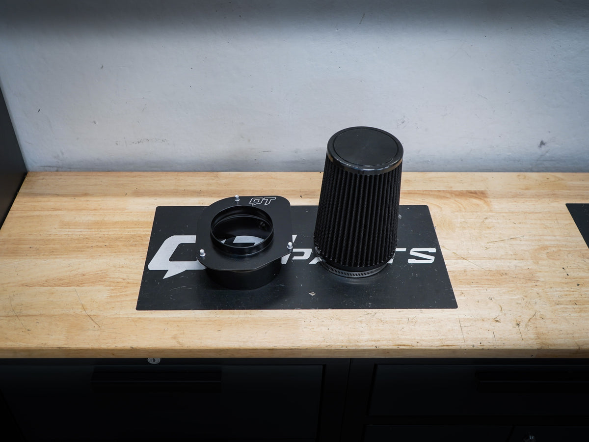 The QT 5″ filter element is installed with the included adapter in a standard suction box. The large filter element improves throttle response and power output. Suction sounds become significantly stronger. An absolute upgrade when tuning M133 technology. You can see the difference even in a standard car!
