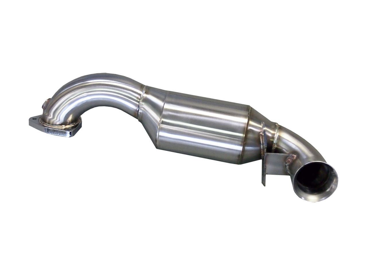 Downpipes are a significant part for torque range and power in a charged system. They are the connection between the exhaust outlet of the charger and the catalyst. If the diameter of the downpipe is bigger, the turbocharger is able to lead off the exhaust gas easier and quicker. This has a positive influence on torque and power.