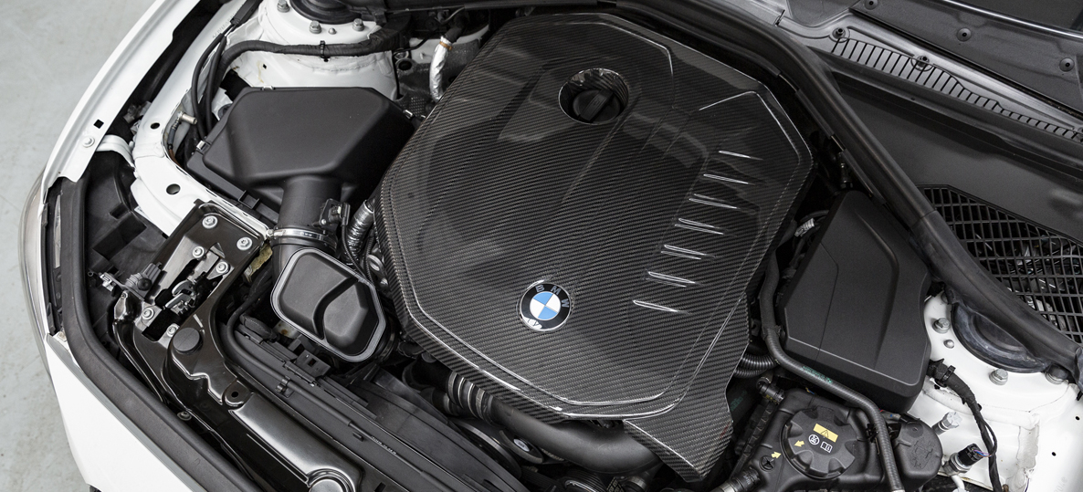 Made from prepreg carbon fiber, this engine cover is suitable for F-Series cars equipped with the B58 engine.