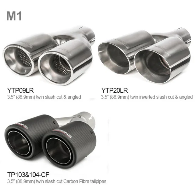 This exhaust has a choice of 4" (101.6mm) tailpipe options including a choice of carbon fiber tip options.