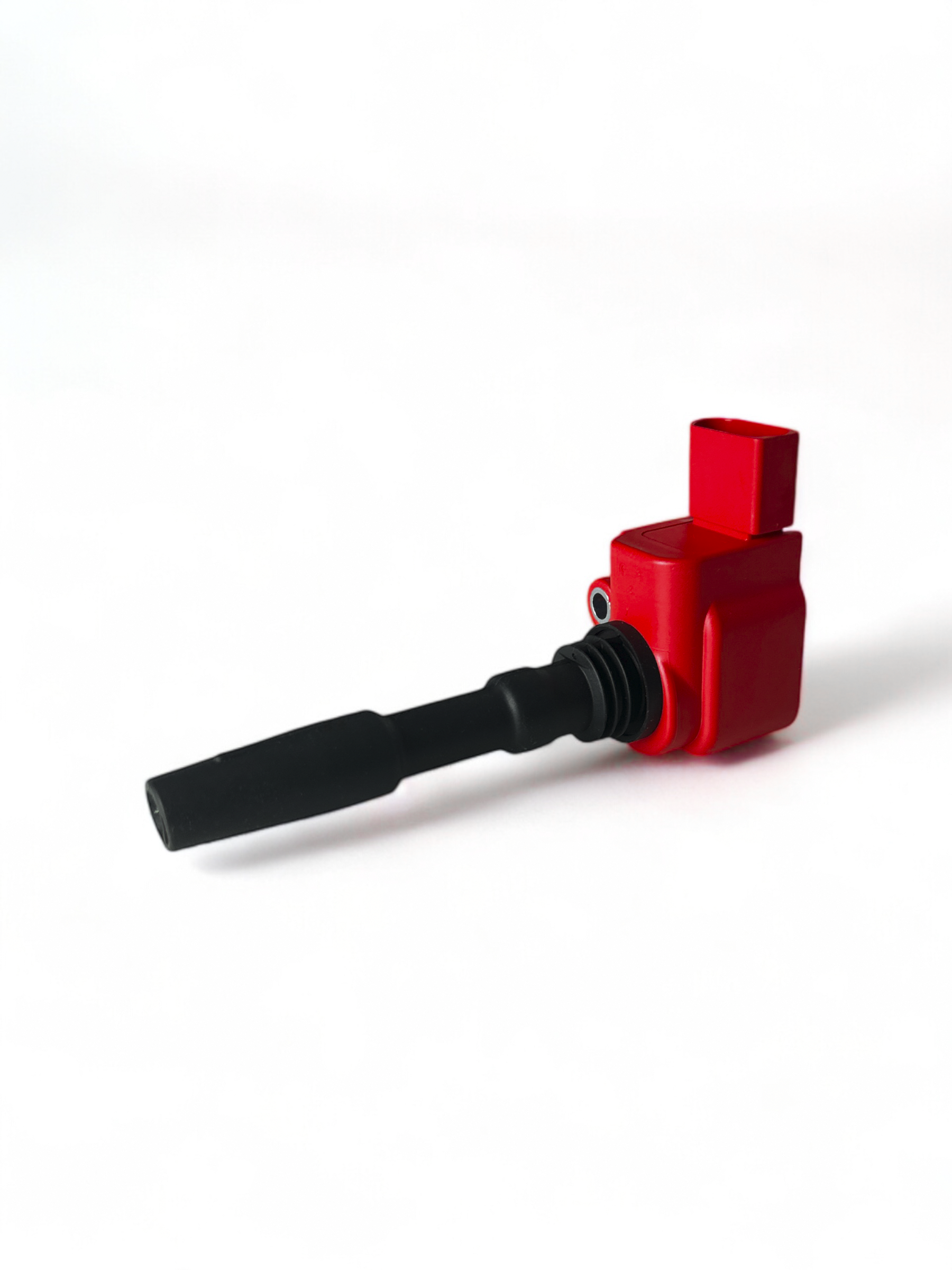 High performance ignition coils 4.0L TFSI TFSI High Performance ignition coil in red.