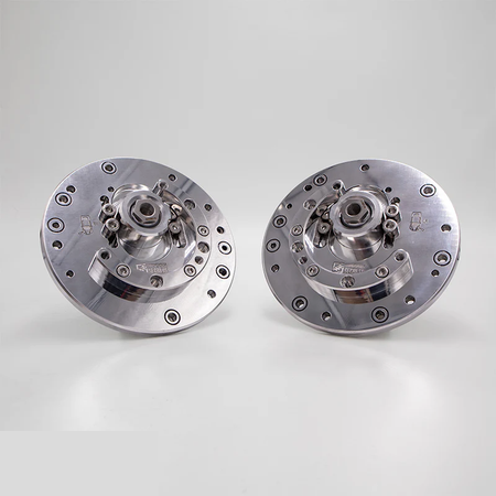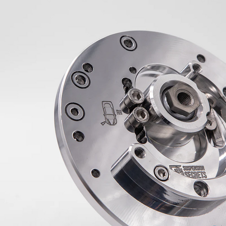 In order to adjust the camber on the front axle, camber plates are required. We've designed our camber plates to offer both camber and caster, resulting in greatly improved steering feel, increased cornering grip and reduced understeer.