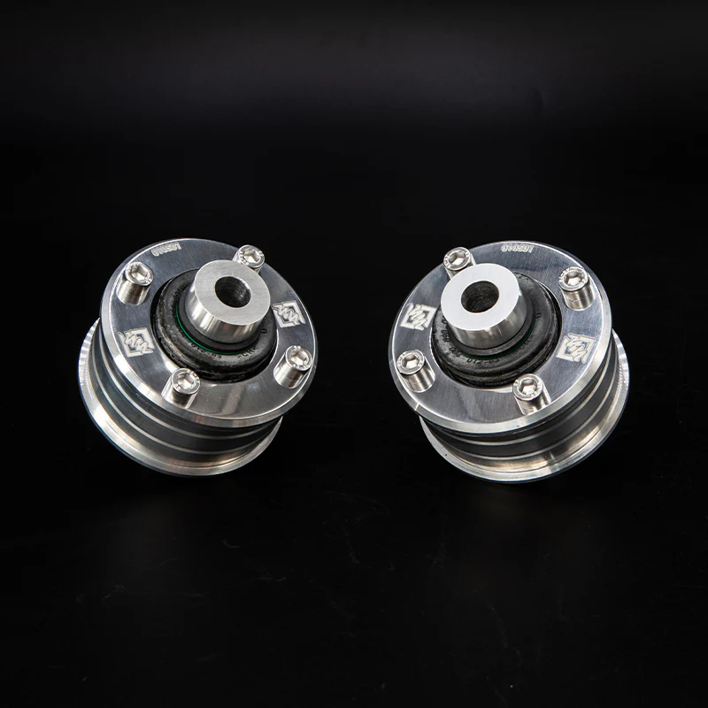 The standard BMW front control arm bushes are made from soft rubber. This rubber flexes when driving fast, causing the steering to feel vague at the limit. These rubber bushes also flex when braking hard leading your M3/M4 to feel nervous or unstable.