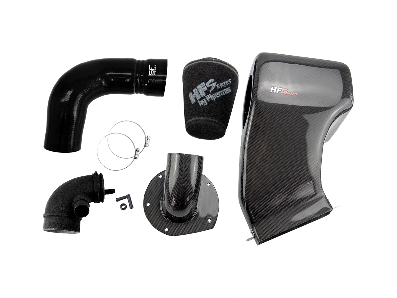 This Carbon Intake made by HF-Series is the result of years of experience and continuous development. The suction is made entirely from carbon fiber. So we can guarantee the highest tensile strength and stiffness. 4x as strong as aluminum, vibration and gas- and pressure-tight - perfect for best airflow. This system is especially developed with a Pipercross Air Filter.